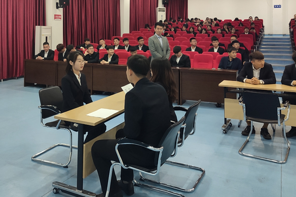 在韩祥祚老师讲解后,由财经分院王跃副书记和2017级各班班长组织全体同学按照面试礼仪的要求进行模拟面试。同学们的一言一行展现出面试礼仪行为的规范性,以及机智与敏锐的思维。韩老师耐心地指出并纠正同学们在模拟面试环节出现的不正确不规范表现,为同学们在以后的面试中表现更加出色。