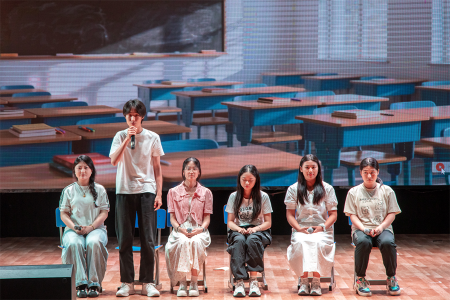 1名思政课教师(苗瑀格)和2名辅导员教师(姜宇航、宋尧)主动走上舞台,以“剧中人”身份与学生深情演绎作品。他们将深邃理论转化为鲜活故事,让抽象概念具象为动人场景。师生同台献艺、以剧传道,将一堂堂带有“艺术味”的思政课搬上舞台。这种“师生共演、艺理融合”的全新尝试,不仅为作品注入思想深度,更搭建起心灵对话的桥梁,使思政教育在情感共鸣中实现价值引领。